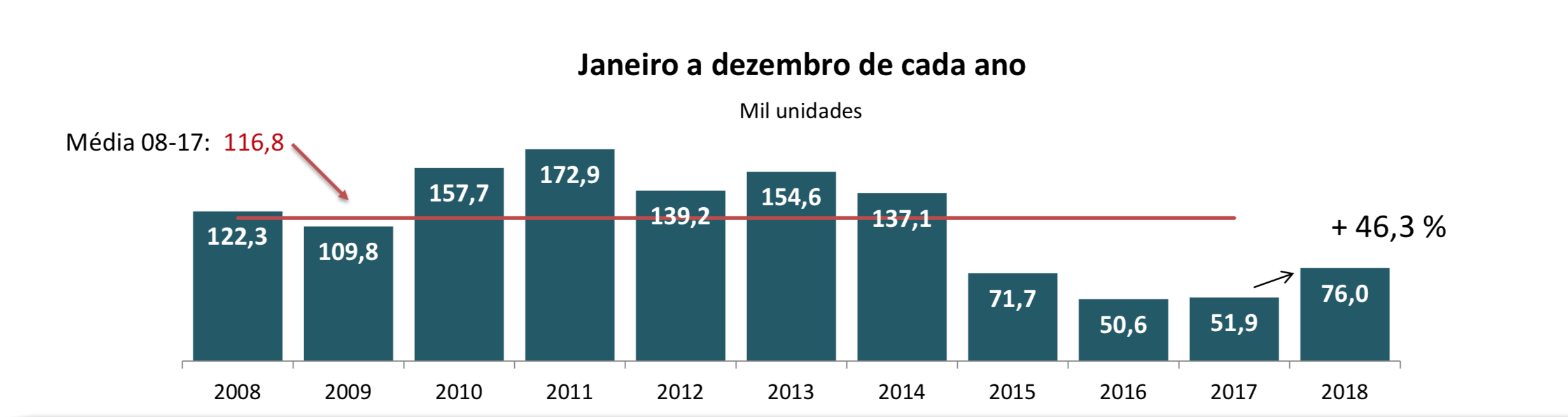 Ainda que a base de 2017 fosse pequena, os resultados de 2018 deixaram as montadoras animadas. Enquanto 2017 fechou com 51.941 caminhões vendidos, 2018 surpreendeu e fechou com 75.987 unidades, um crescimento de 46,3%. Os dados são da Anfavea, Associação Nacional dos Fabricantes de Veículos Automotores.
